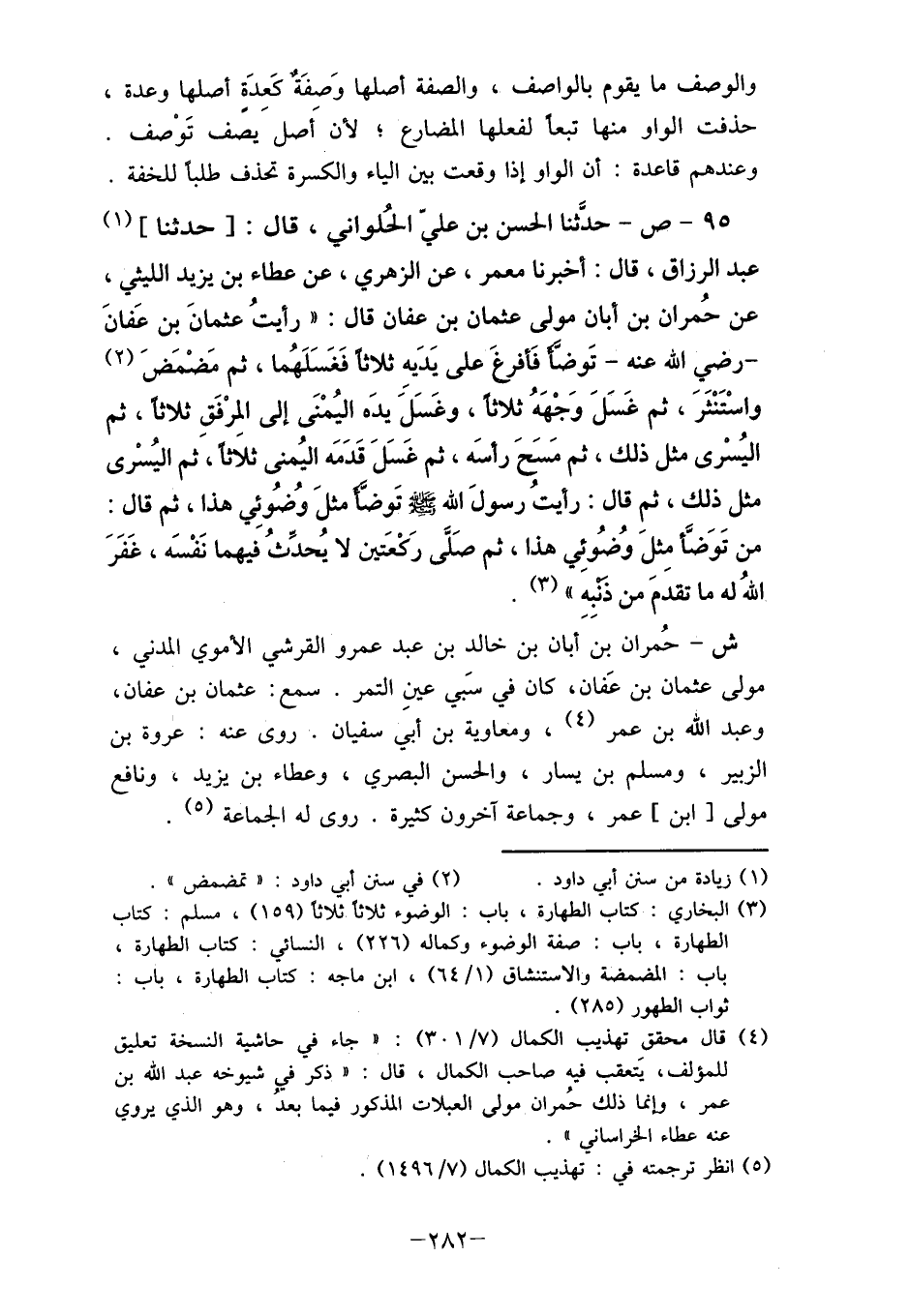 عن حُمران بن أبان مولى عثمان بن عفان قال: " رأيتُ عثمان بن عفان