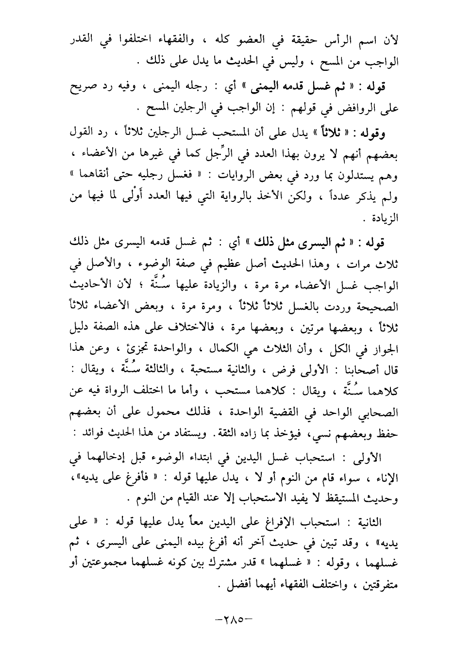 وقوله: " ثلاثاً " يدل على أن المستحب غسل الرجلين ثلاثاً، رد القول