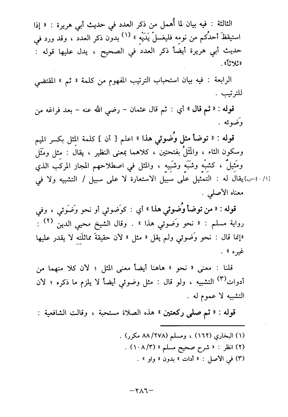 رواية مسلم: " نحو وضوئي هذا ". وقال الشيخ محيي الدين (2) :