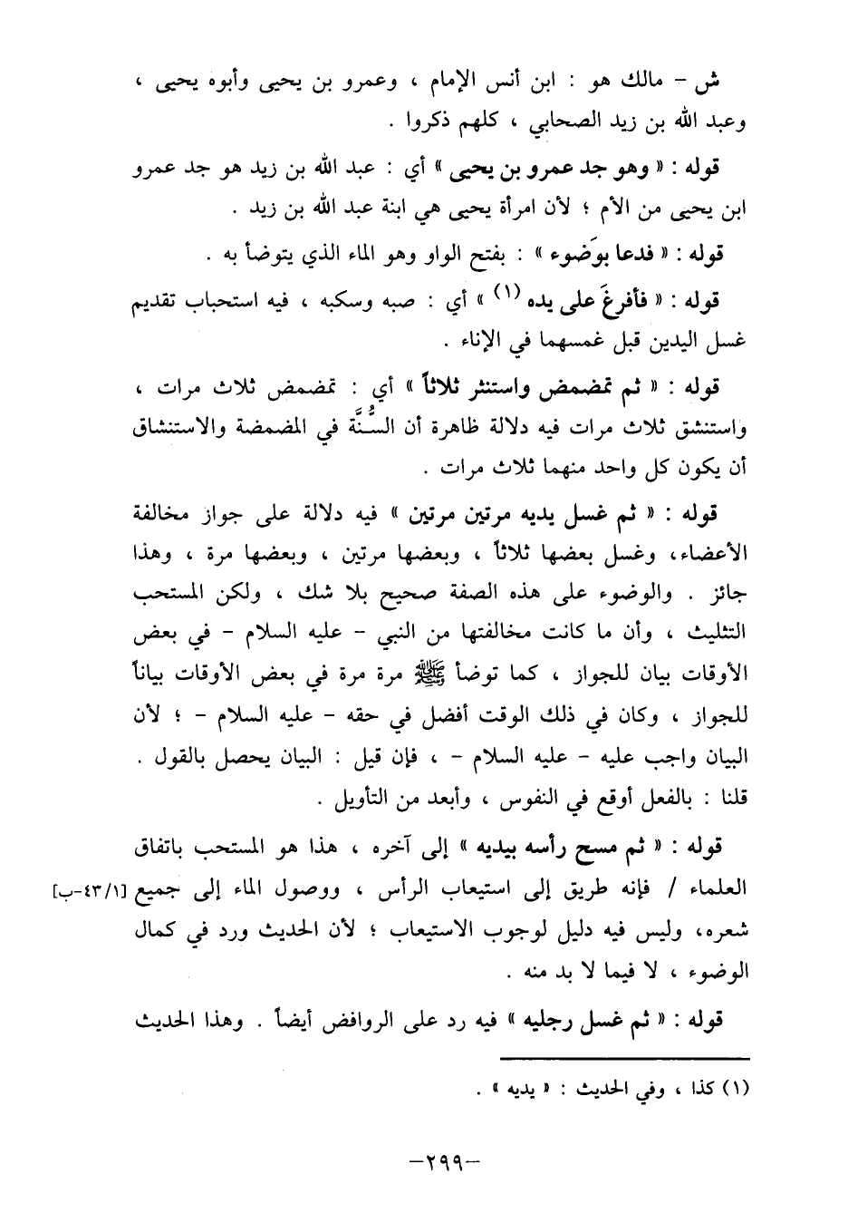 قوله: " ثم غسل رجليه " فيه رد على الروافض أيضاً. وهذا الحديث