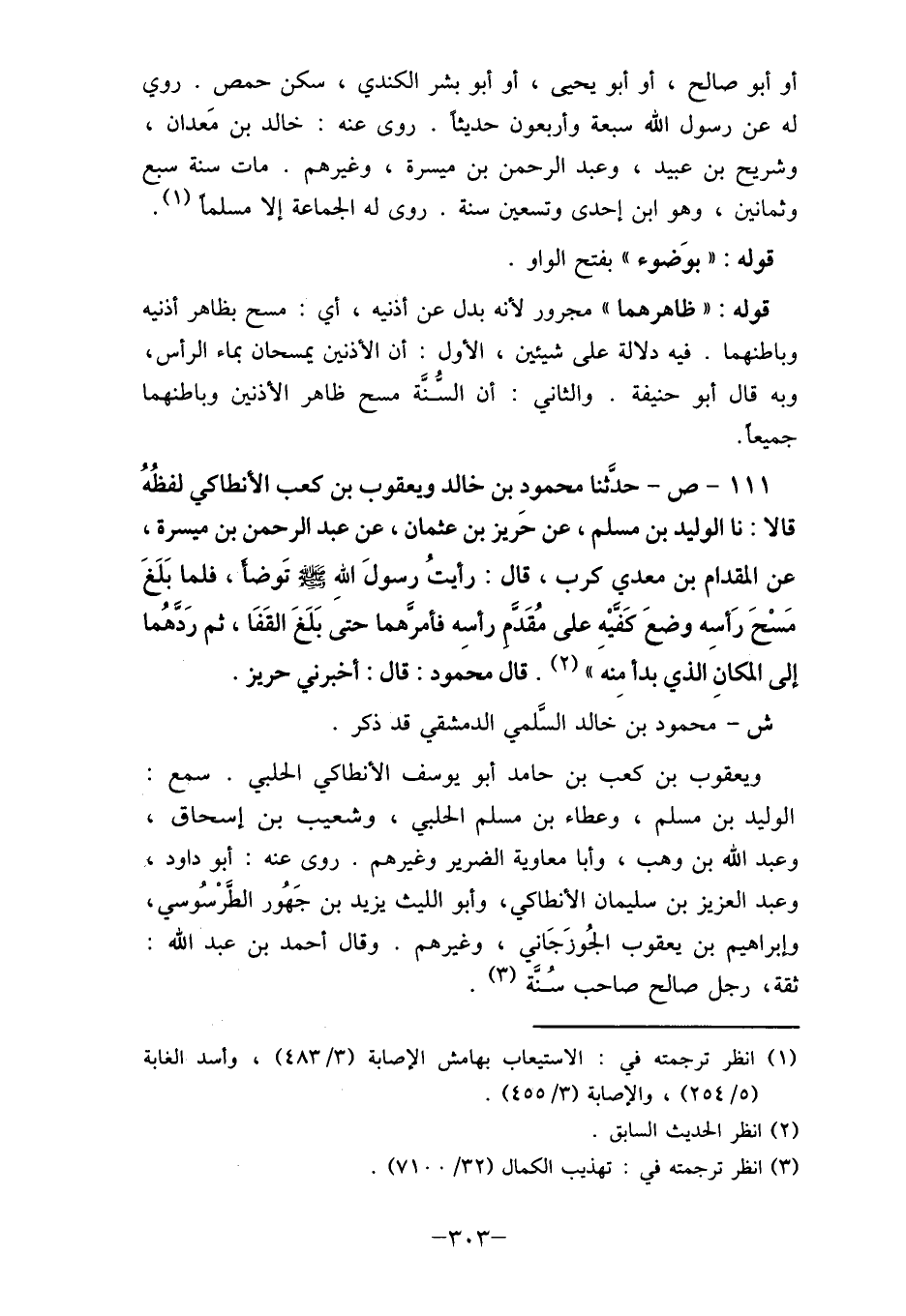 111- ص- حدثنا محمود بن خالد ويعقوب بن كعب الأنطاكي لفظُهُ