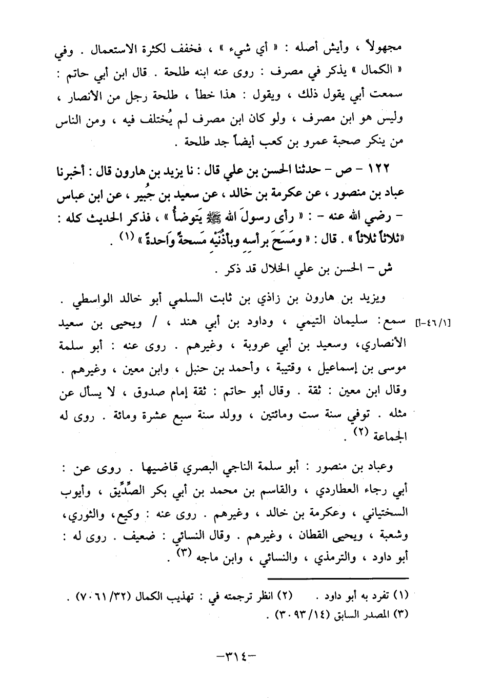 122- ص- حدثنا الحسن بن علي قال: نا يزيد بن هارون قال: أخبرنا