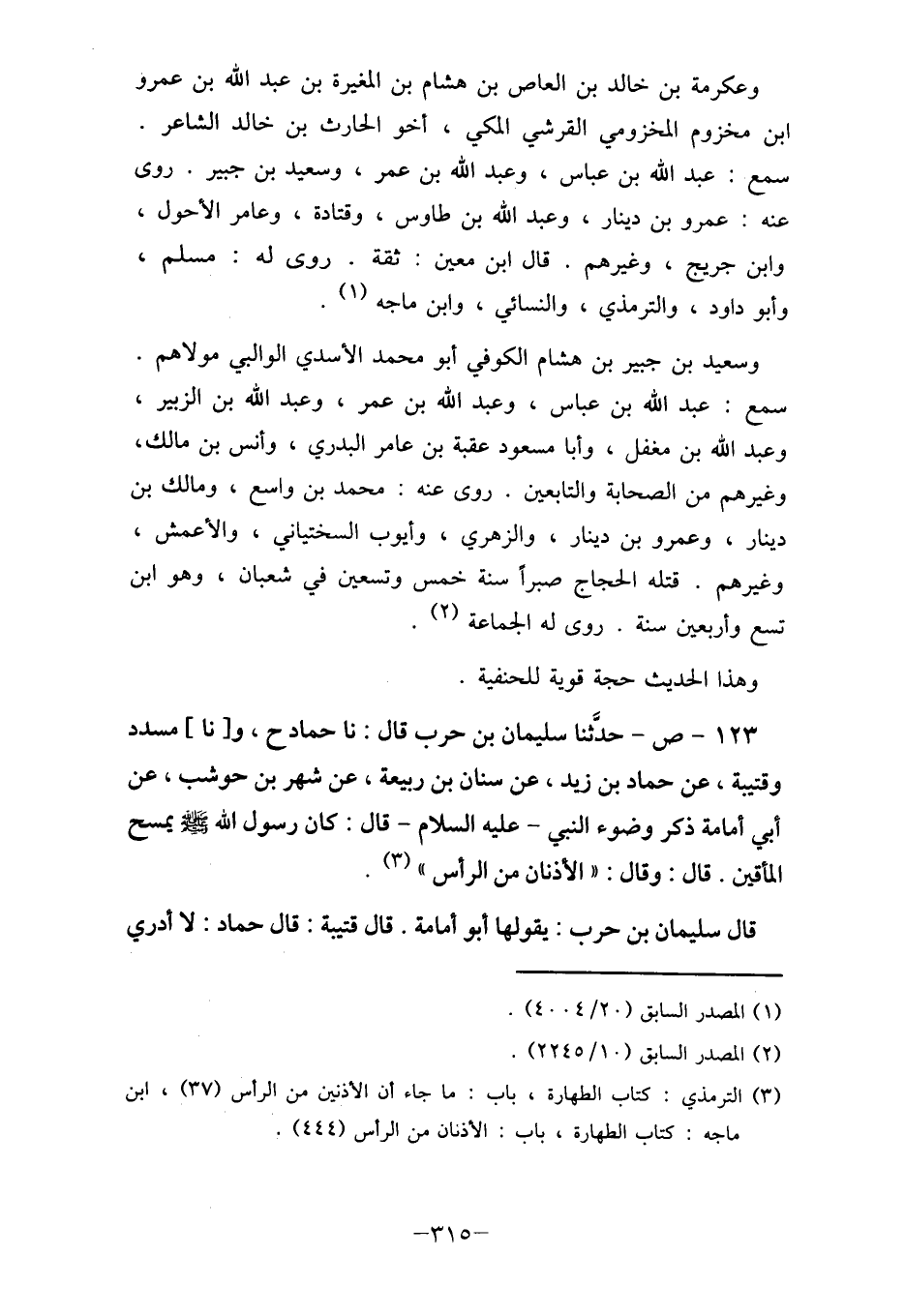 123- ص- حدثنا سليمان بن حرب قال: نا حماد ح، و [نا] مسدد
