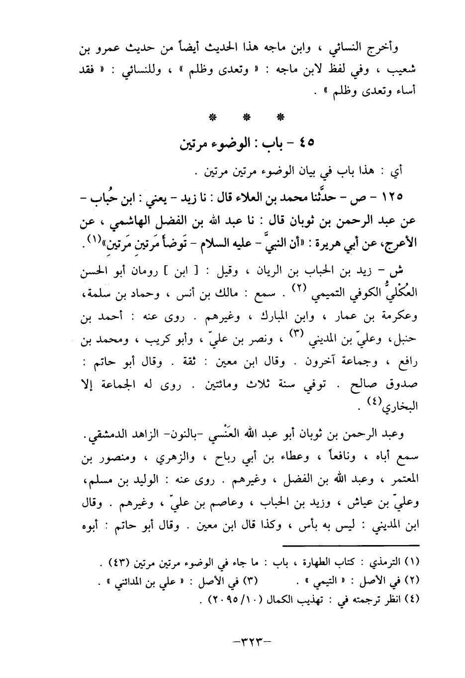(1) الترمذي: كتاب الطهارة، باب: ما جاء في الوضوء مرتين مرتين (43) .