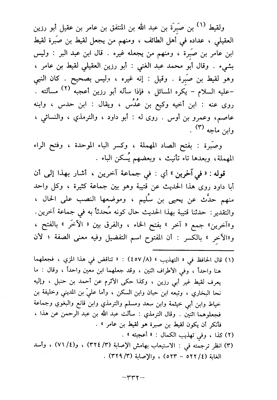 فأنكر أن يكون لقيط بن صبرة هو لقيط بن عامر ".