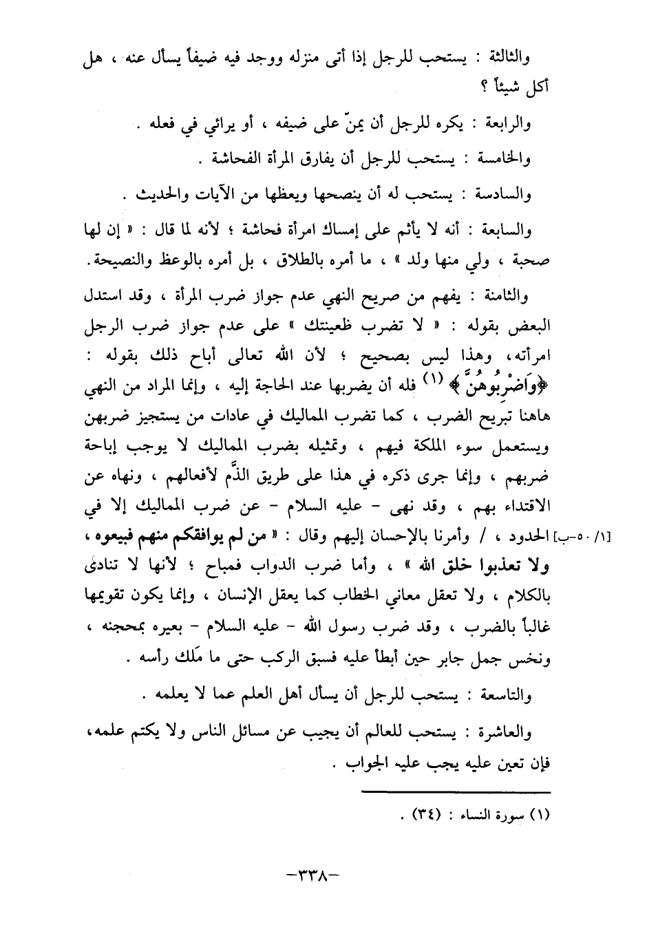 والعاشرة: يستحب للعالم أن يجيب عن مسائل الناس ولا يكتم علمه،