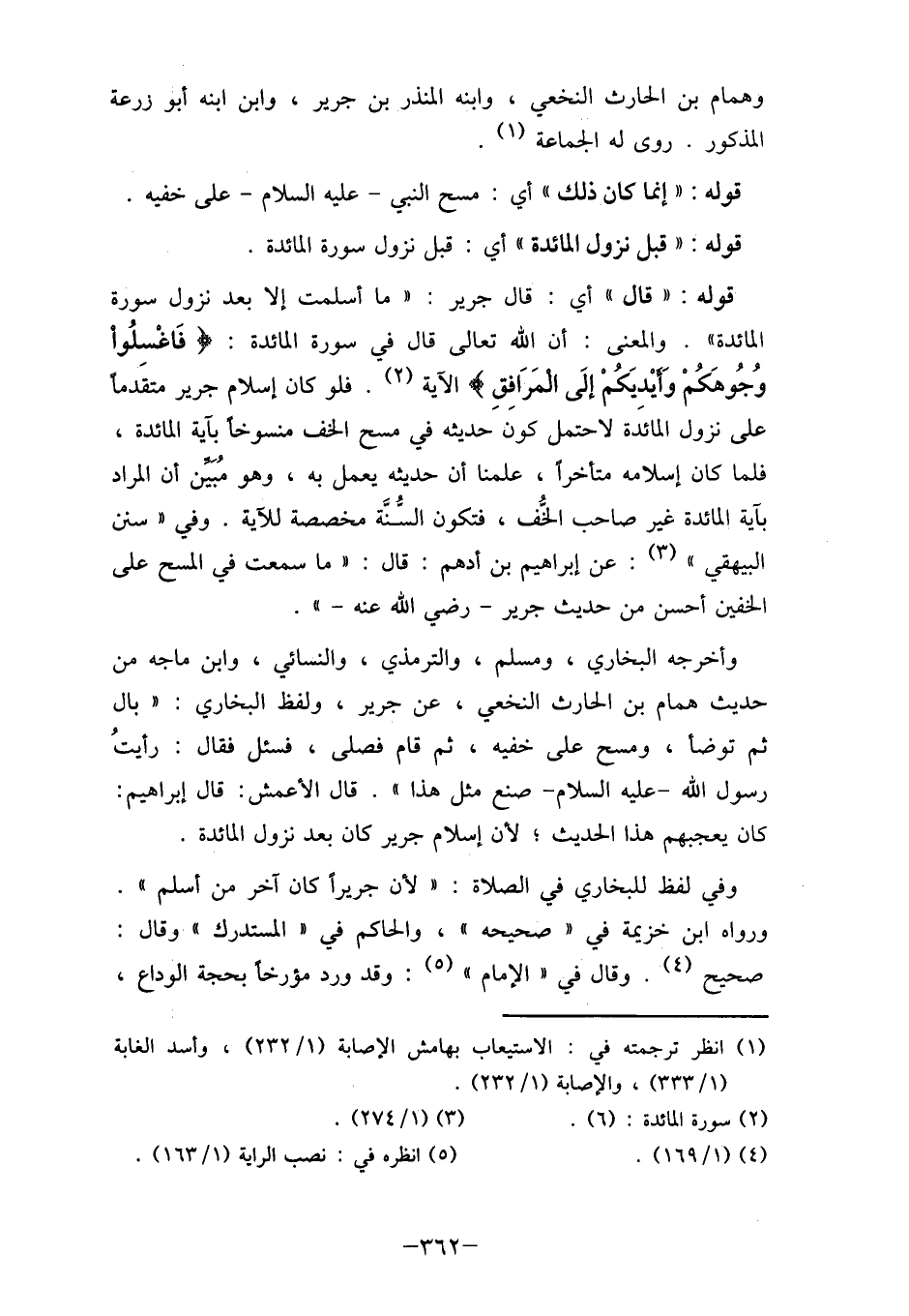وُجُوهكُمْ وأيْديكُمْ إلى المرافق) الآية (2) . فلو كان إسلام جرير متقدماً