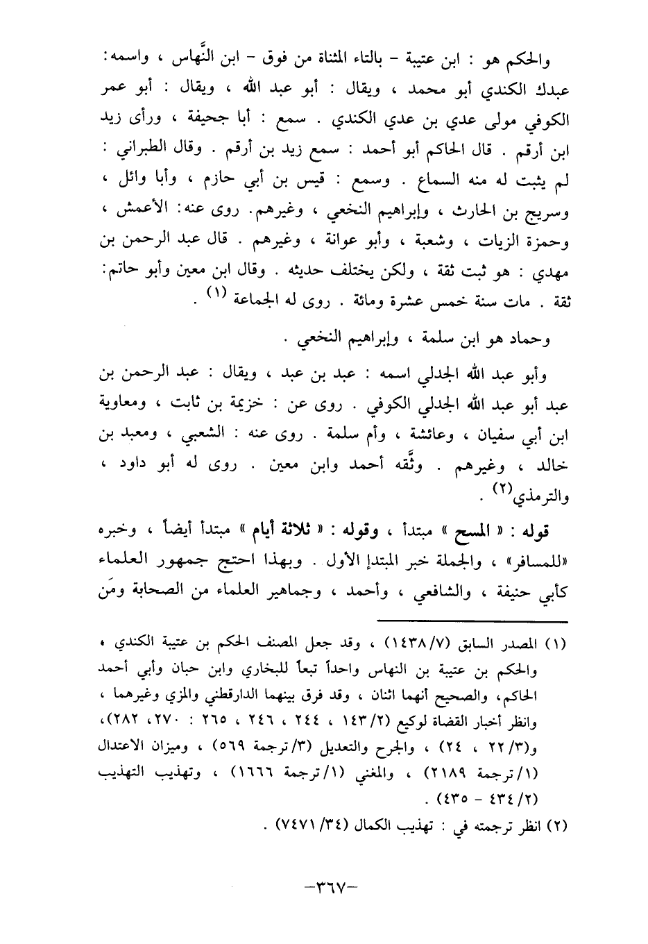 (1) المصدر السابق (7/1438) ، وقد جعل المصنف الحكم بن عتيبة الكندي،