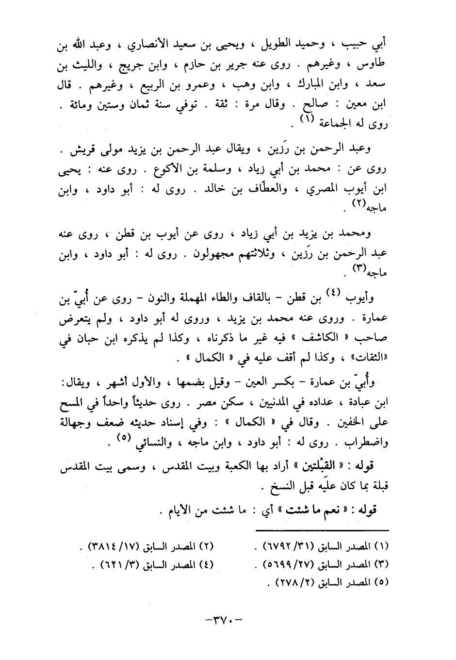 وأيوب (4) بن قطن- بالقاف والطاء المهملة والنون- روى عن أبي بن