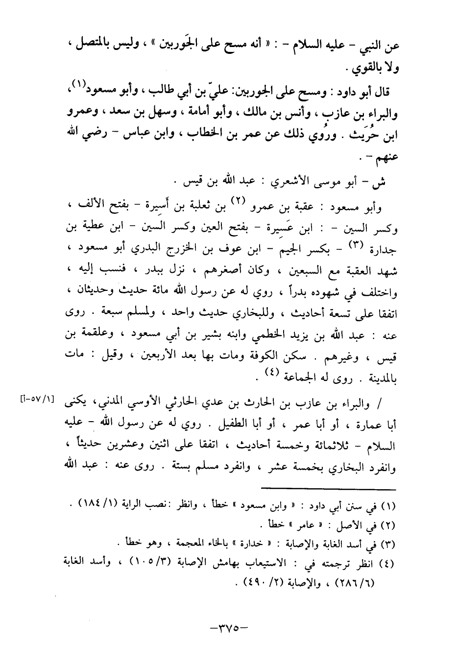 قال أبو داود: ومسح على الجوربين: عليّ بن أبي طالب، وأبو مسعود (1) ،