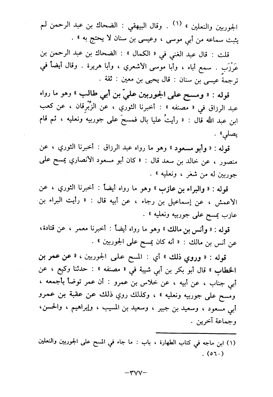(1) ابن ماجه في كتاب الطهارة، باب: ما جاء في المسح على الجوربين والنعلين