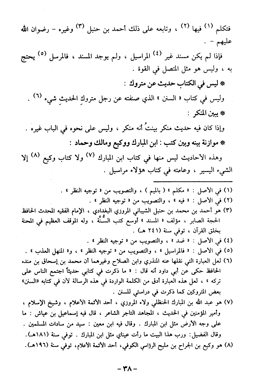 بعض المتروكين كما ذكرت في دراستي للسنن.