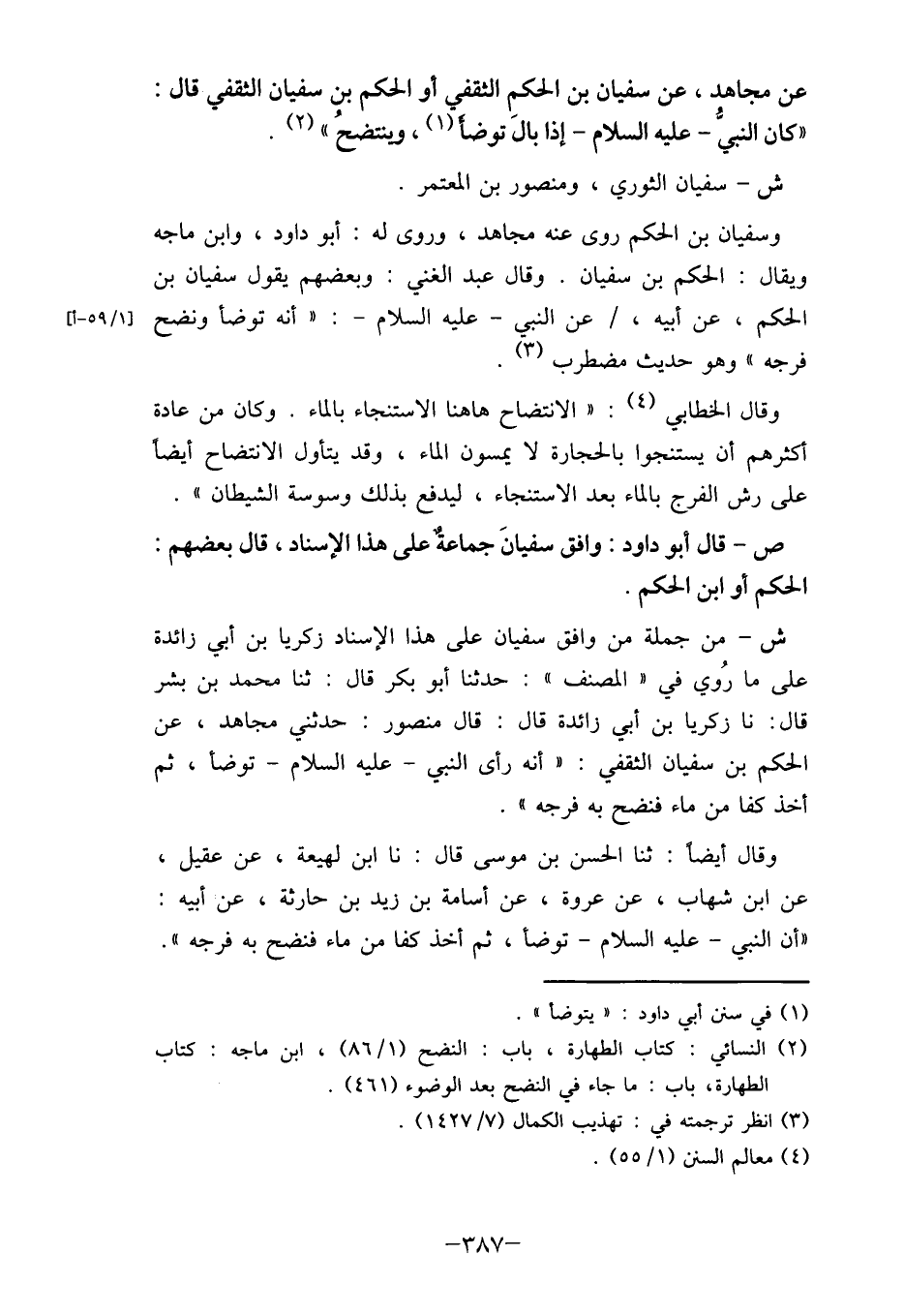 ش- من جملة من وافق سفيان على هذا الإسناد زكريا بن أبي زائدة