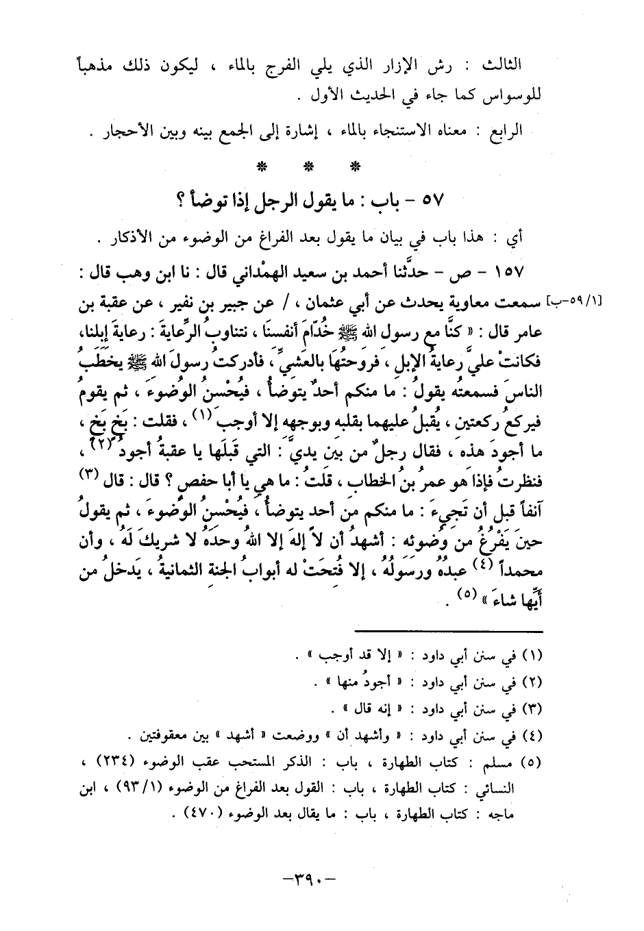 ماجه: كتاب الطهارة، باب: ما يقال بعد الوضوء (470) .