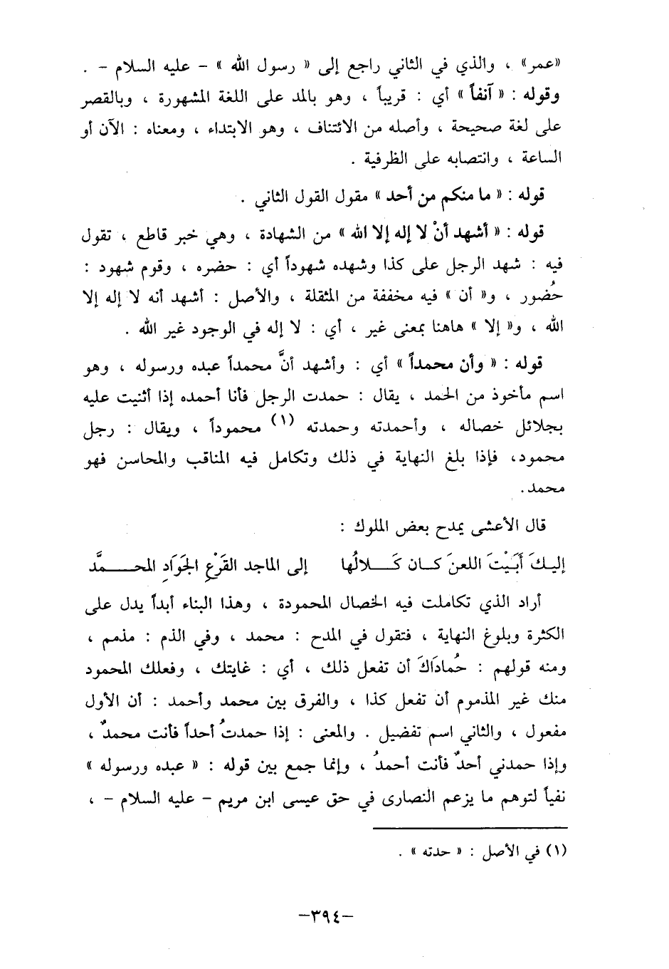 وإذا حمدني احدٌ فأنت أحمدُ، وإنما جمع بين قوله: " عبده ورسوله "