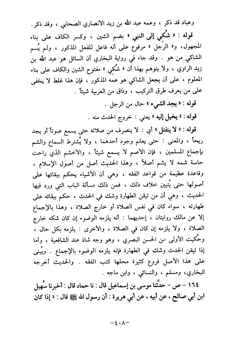 قوله: " شُكي إلى النبي " بضم الشين، وكسر الكاف على بناء