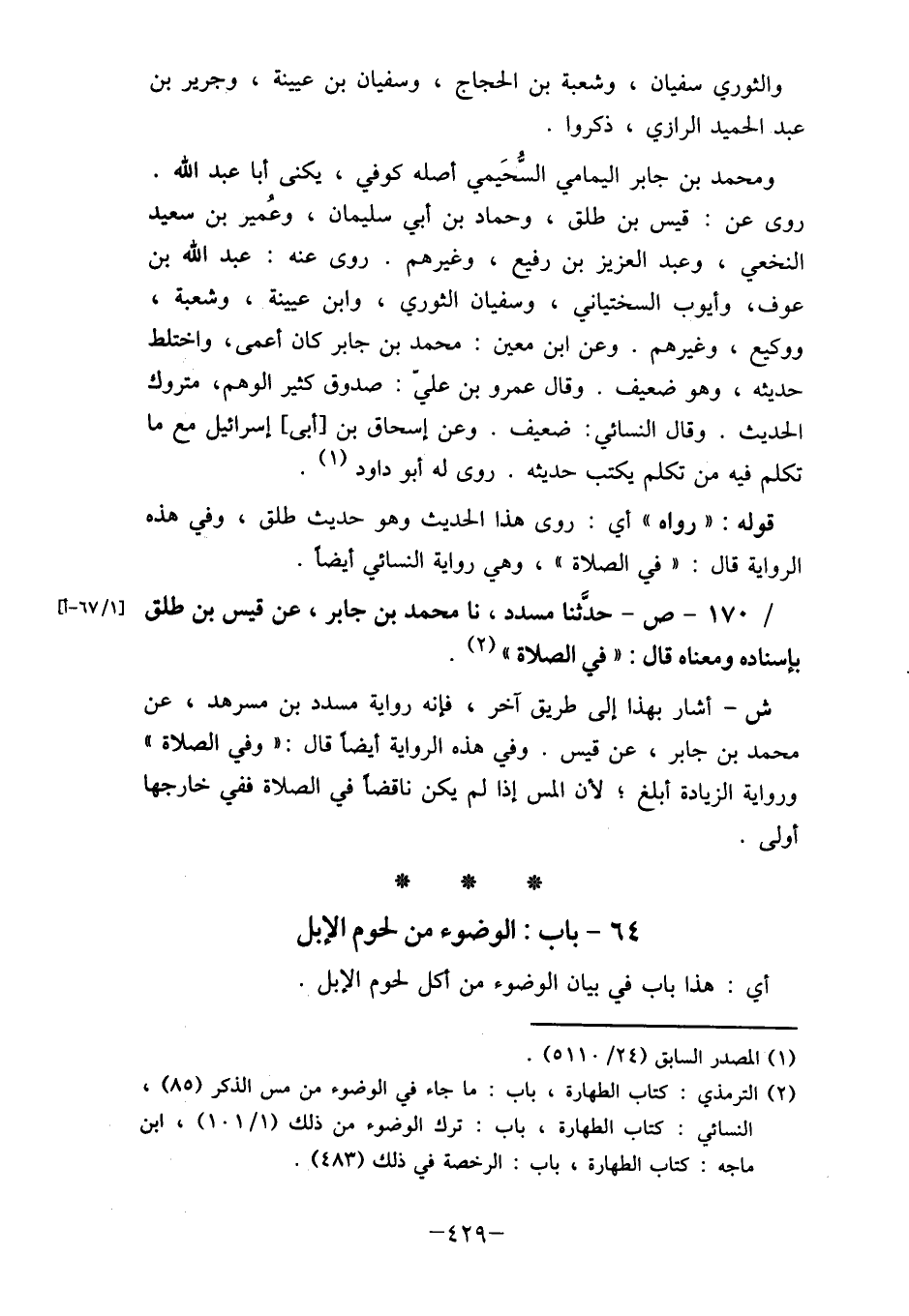 64- باب: الوضوء من لحوم الإبل