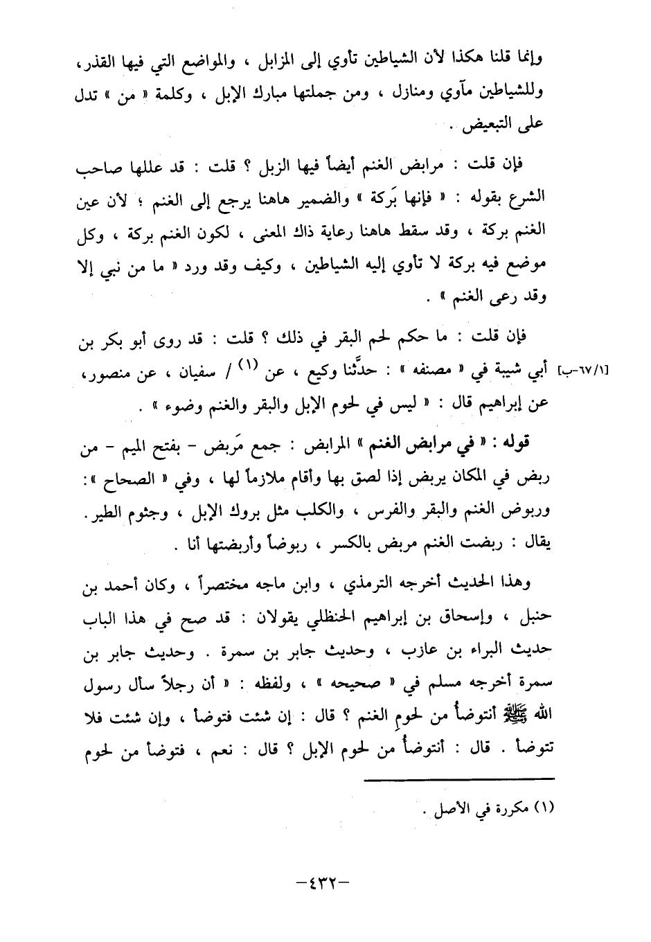فن قلت: مرابض الغنم أيضاً فيها الزبل؟ قلت: قد عللها صاحب