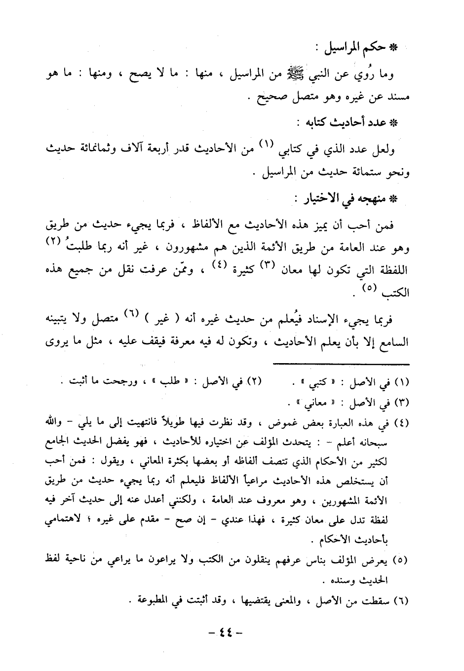 سبحانه أعلم-: يتحدث المؤلف عن اختياره للأحاديث، فهو يفضل الحديث الجامع