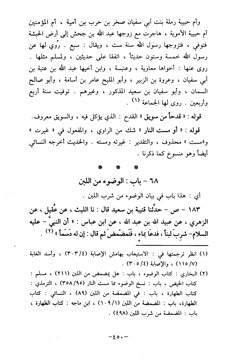 (2) البخاري: كتاب الوضوء، باب: هل يمضمض من اللبن (211) ، مسلم: