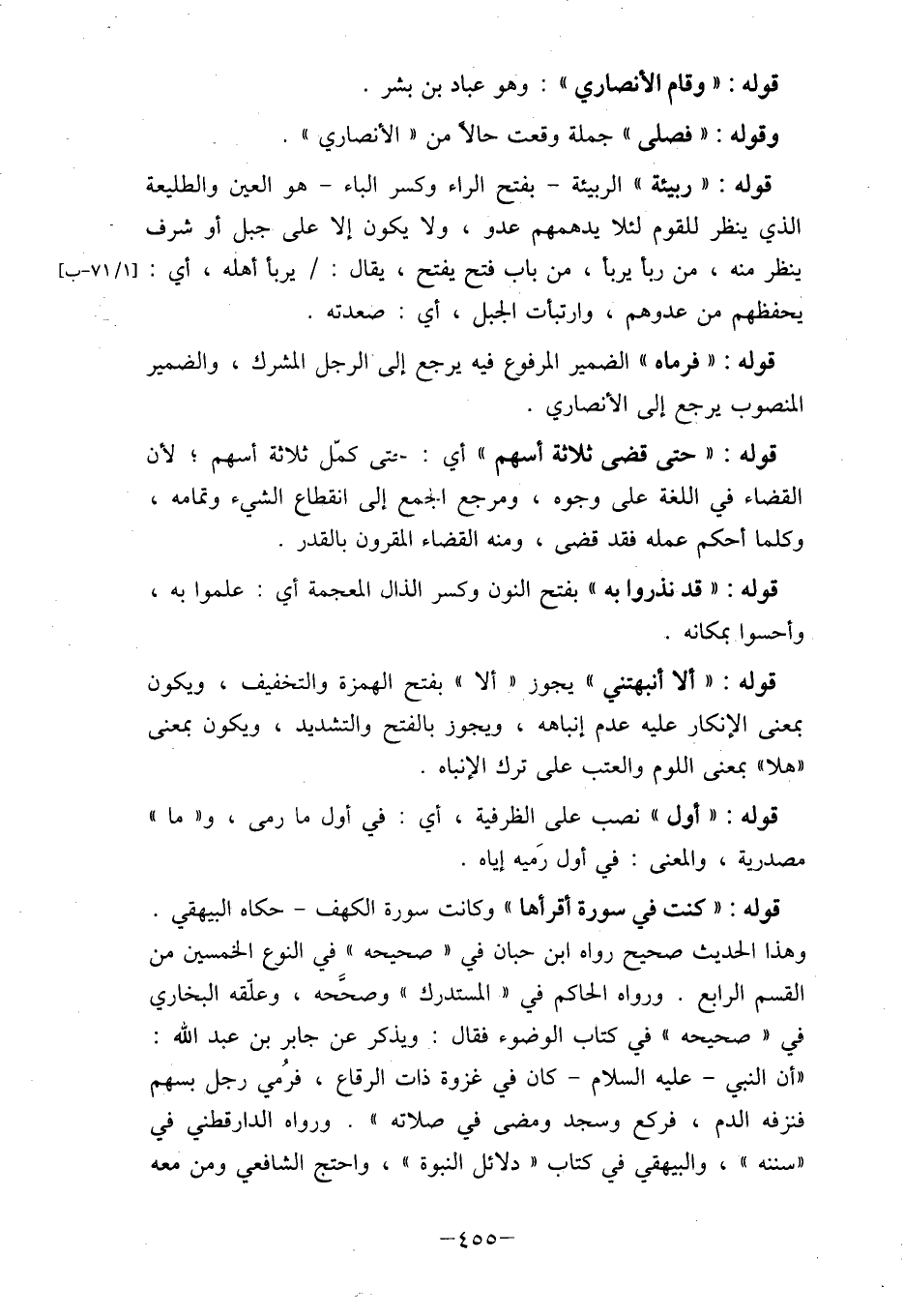 " أن النبي- عليه السلام- كان في غزوة ذات الرقاع، فرُمي رجل بسهم