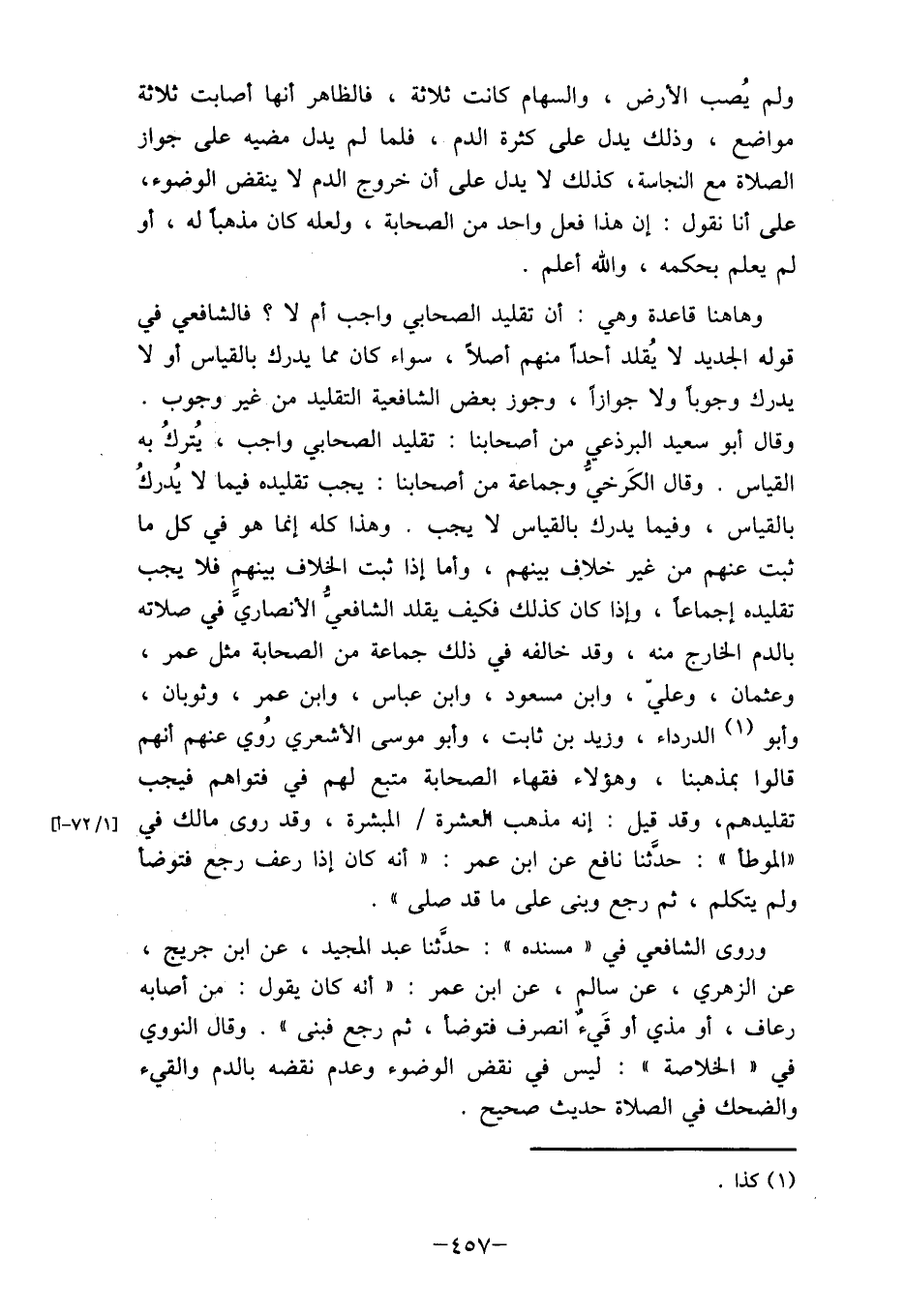 بالدم الخارج منه، وقد خالفه في ذلك جماعة من الصحابة مثل عمر،