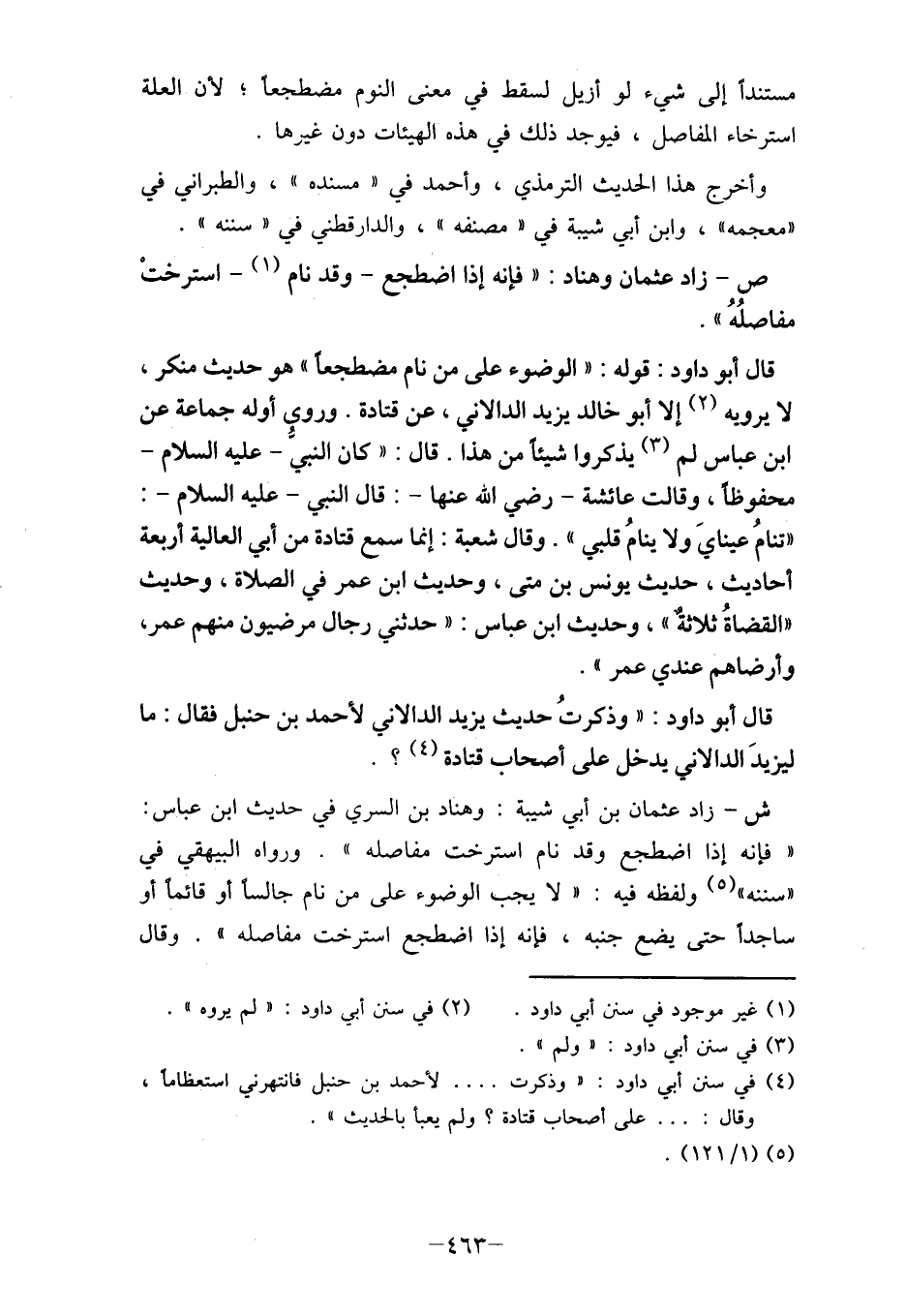 قال أبو داود: قوله: " الوضوء على من نام مضطجعاً " هو حديث منكر،