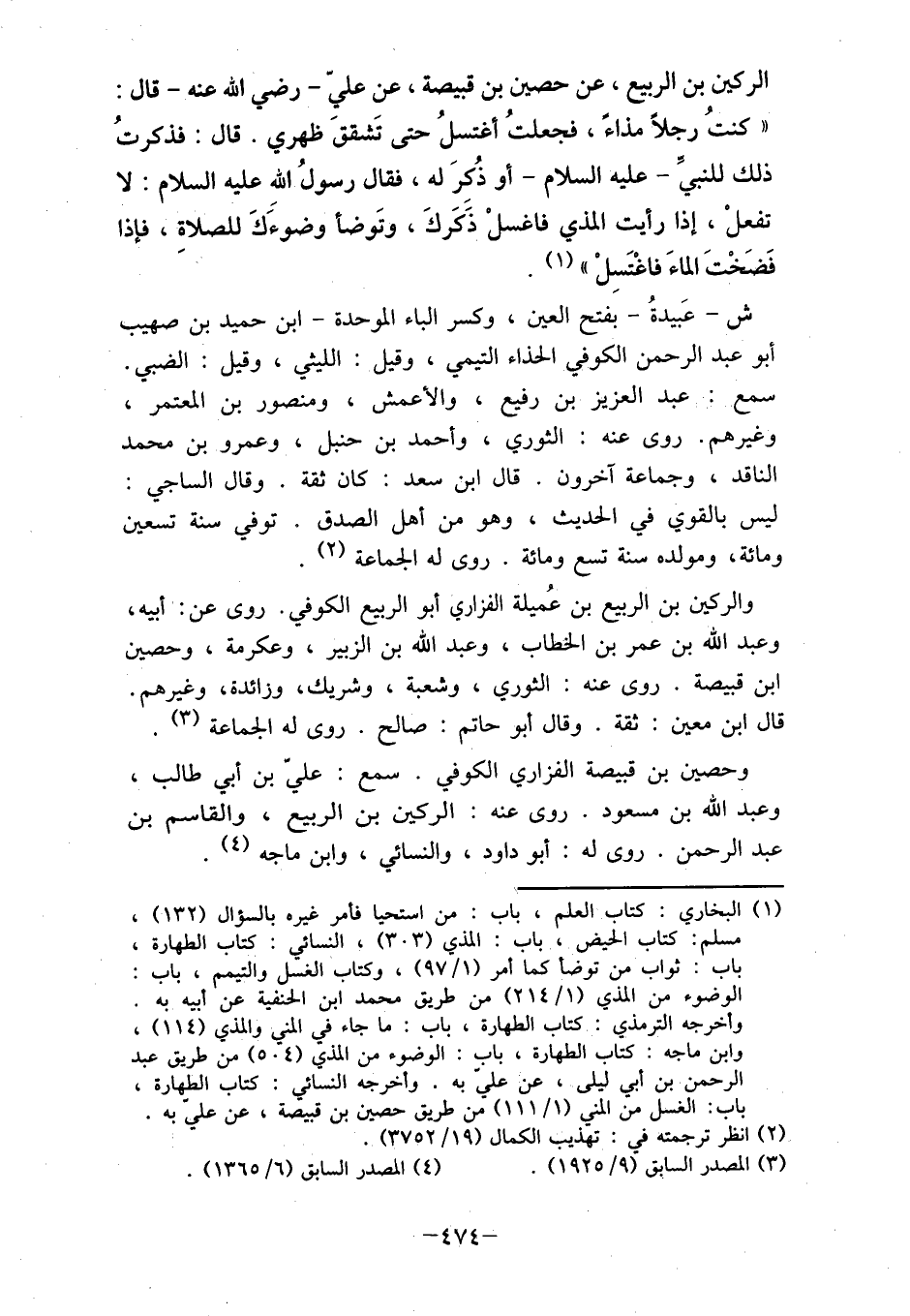 " كنتُ رجلاً مذاءً، فجعلتُ أغتسلُ حتى تشقق ظهري. قال: فذكرتُ