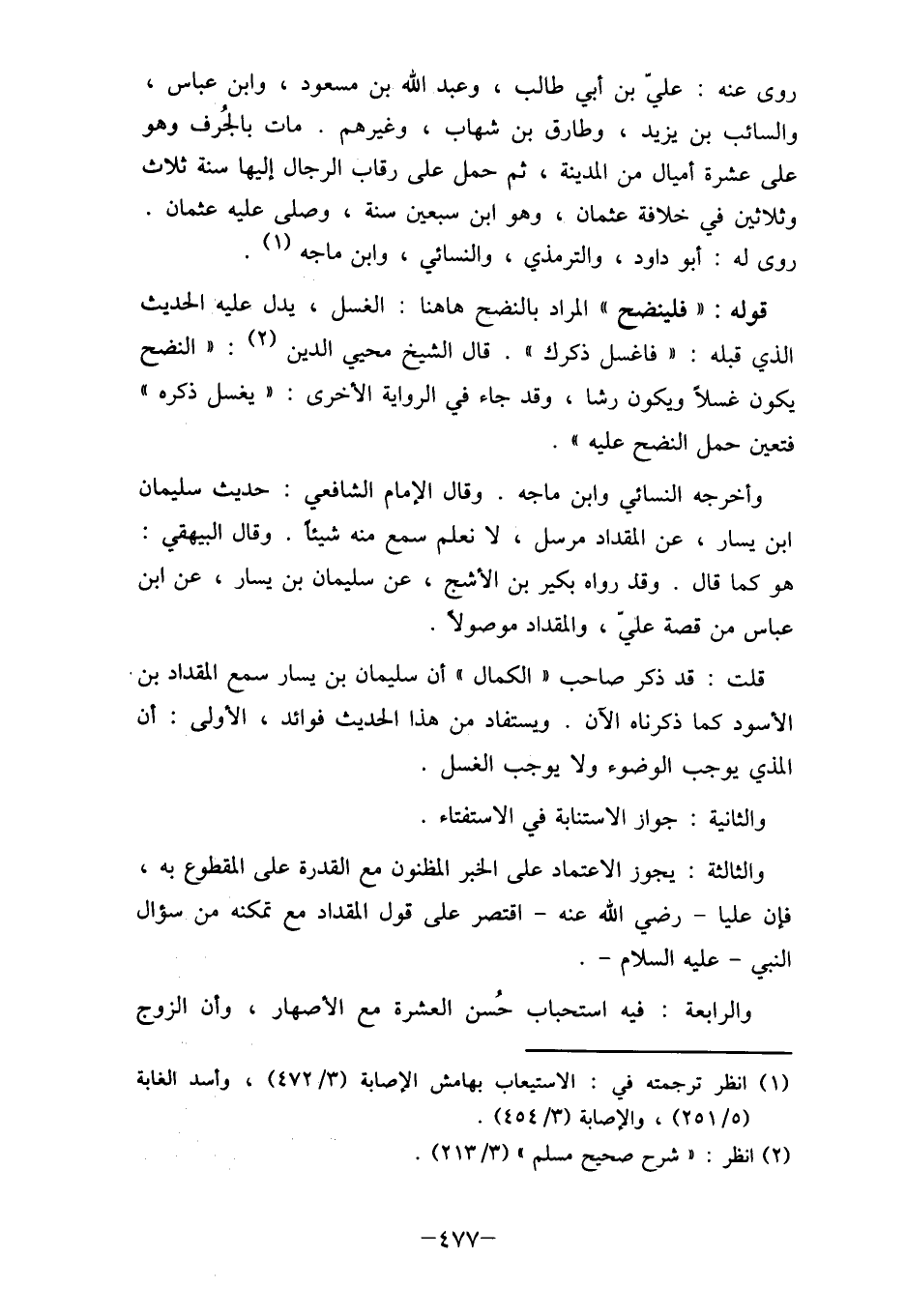 الذي قبله: " فاغسل ذكرك ". قال الشيخ محيي الدين (2) : " النضح