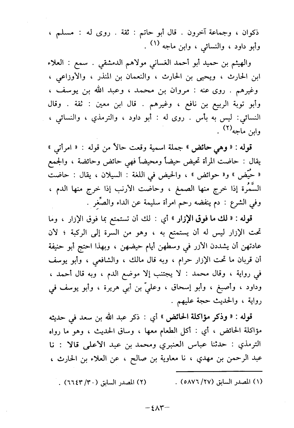 مؤاكلة الحائض، أي: أكل الطعام معها، وساق الحديث، وهو ما رواه