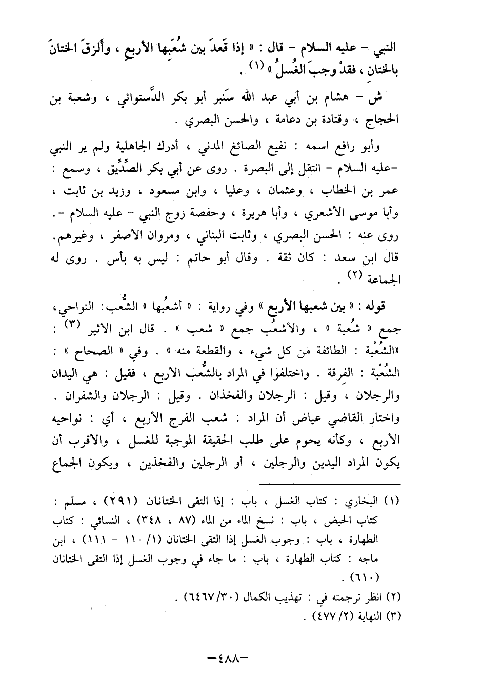النبي- عليه السلام- قال: " إذا قعد بين شُعبها الأربع، وألزق الختان