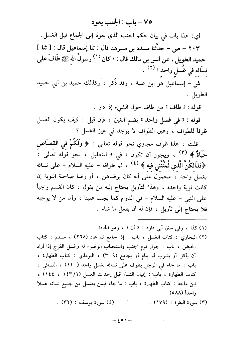 203- ص- حدثنا مسدد بن مسرهد قال: ثنا إسماعيل قال: [ثنا]