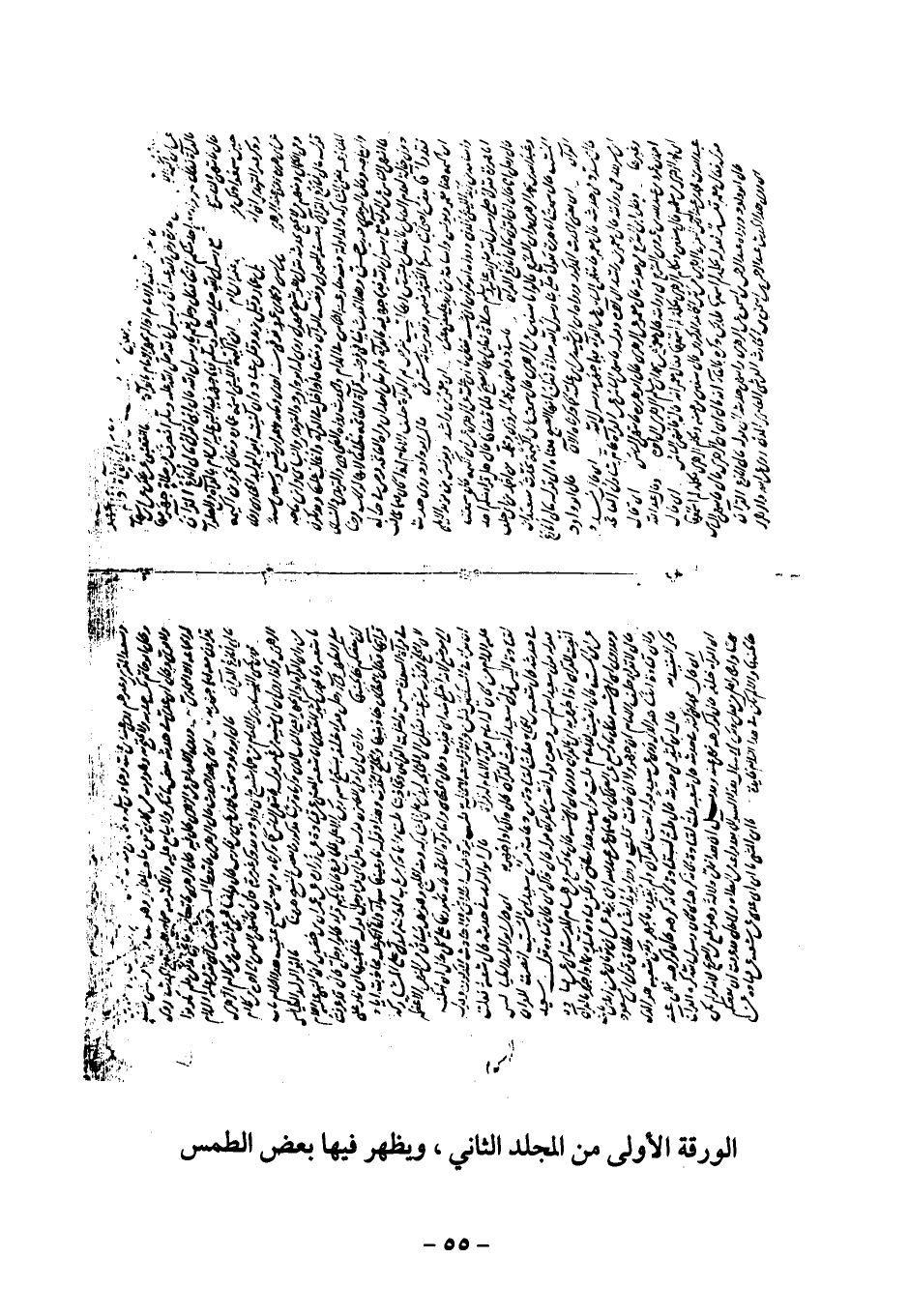الورقة الأولى من المجلد الثاني، ويظهر فيها بعض الطمس