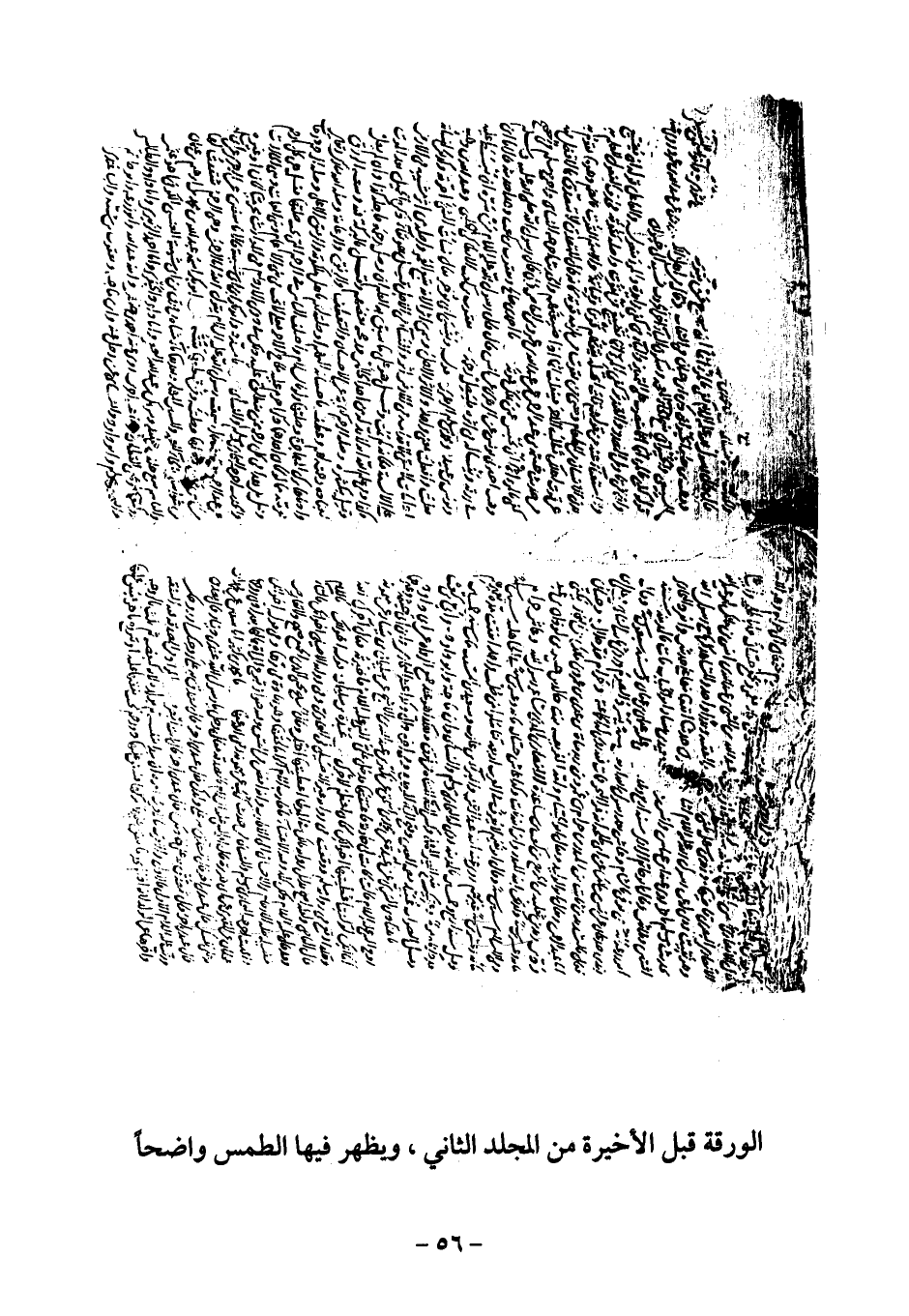 الورقة قبل الأخيرة من المجلد الثاني، ويظهر فيها الطمس واضحاً