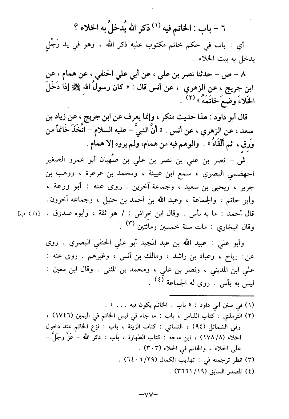(1) في سنن أبي داود: " باب: الخاتم يكون فيه ... ".