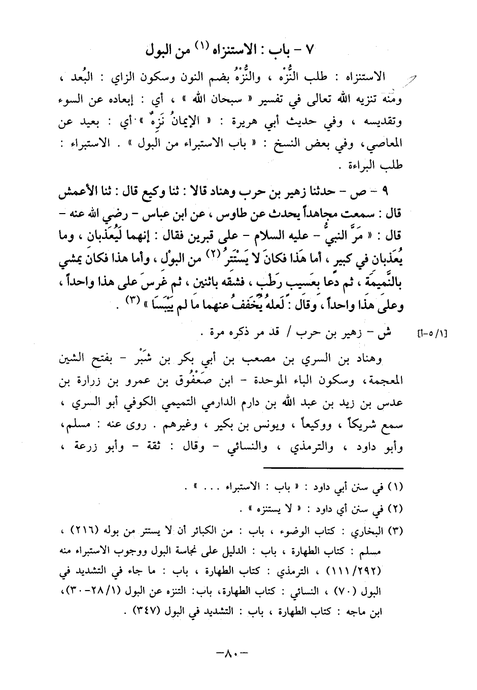 البول (70) ، النسائي: كتاب الطهارة، باب: التنزه عن البول (1/28- 30) ،