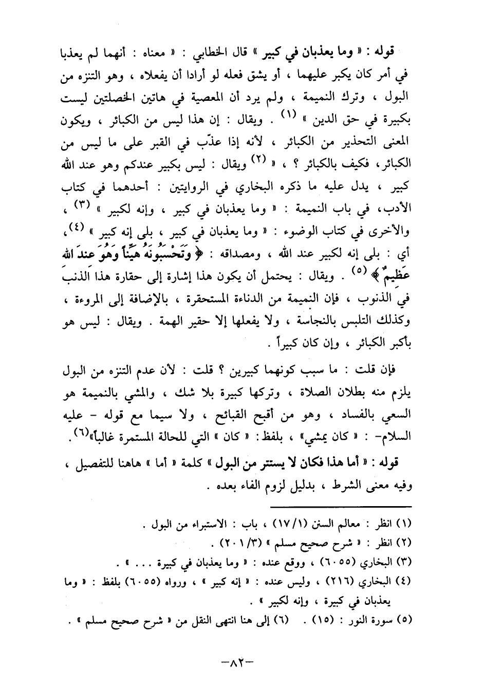 (3) البخاري (6055) ، ووقع عنده: " وما يعذبان في كبيرة ... ".
