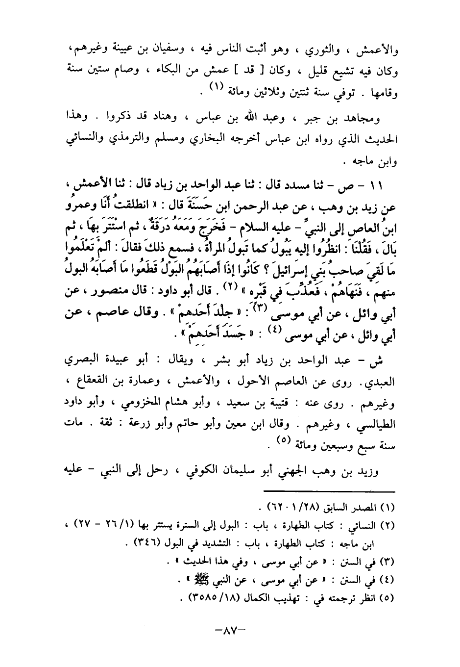 11- ص- ثنا مسدد قال: ثنا عبد الواحد بن زياد قال: ثنا الأعمش،