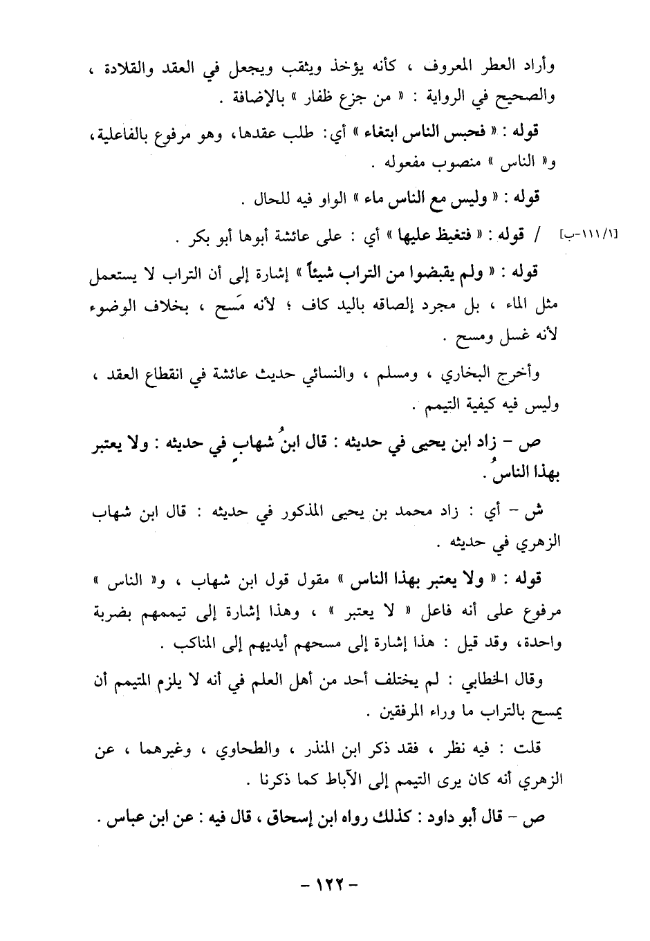 ص- زاد ابن يحيى في حديثه: قال ابنُ شهاب في حديثه: ولا يعتبر