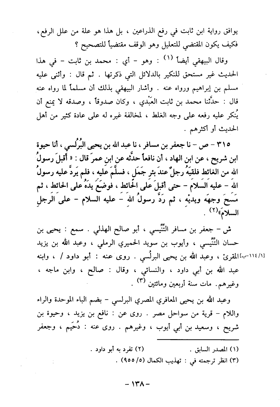315- ص- نا جعفر بن مسافر، نا عبد الله بن يحيى البُرُلسي، أنا حيوة