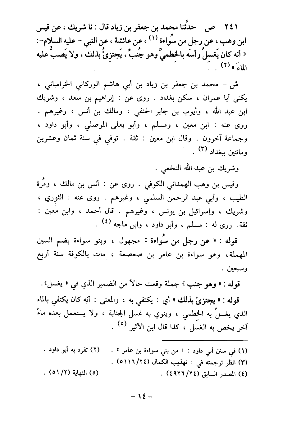 241- ص- حدَّثنا محمد بن جعفر بن زياد قال: نا شريك، عن قيس