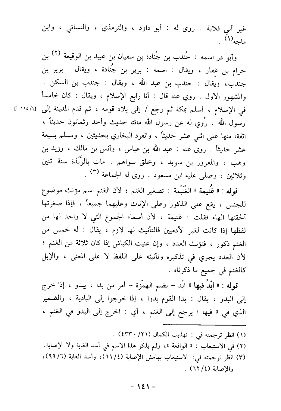 وأبو ذر اسمه: جُندب بن جُنادة بن سفيان بن عبيد بن الوقيعة (2) بن