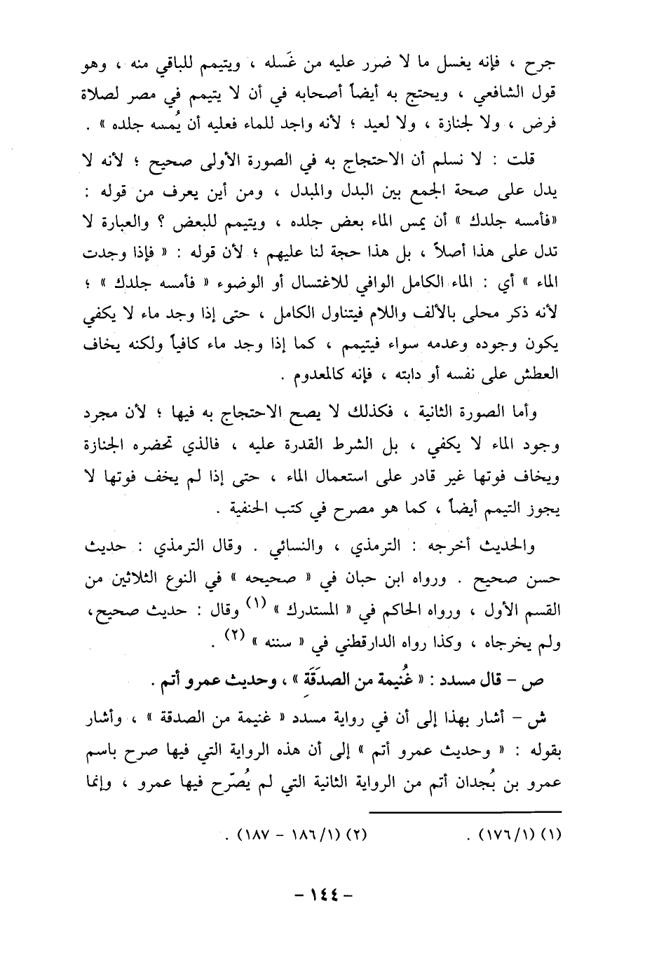 ش- أشار بهذا إلى أن في رواية مسدد " غنيمة من الصدقة "، وأشار