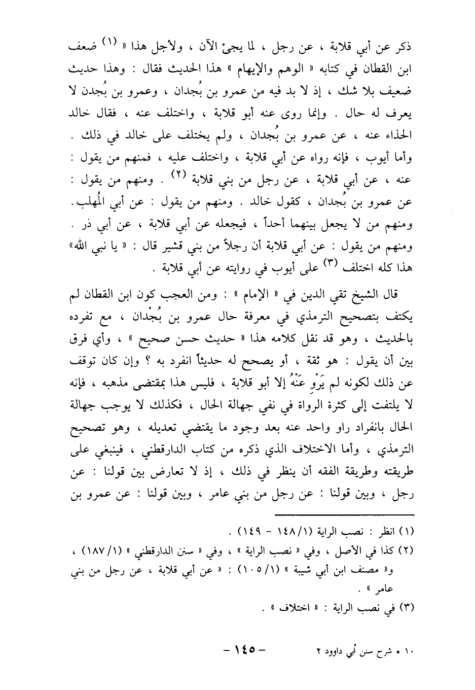 ذكر عن أبي قلابة، عن رجل، لما يجئ الآن، ولأجل هذا " (1) ضعف