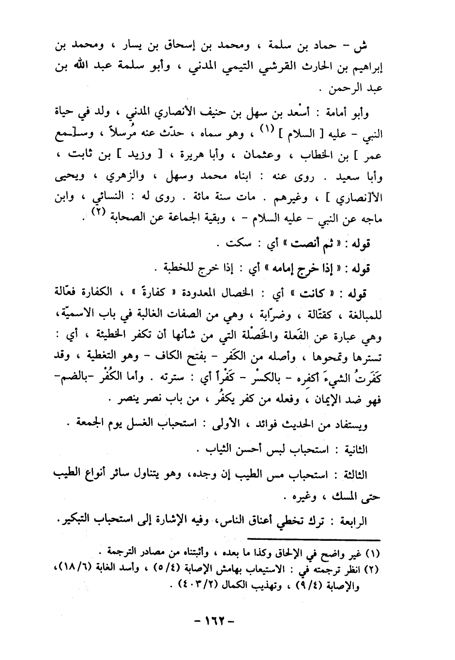 ويستفاد من الحديث فوائد، الأولى: استحباب الغسل يوم الجمعة.