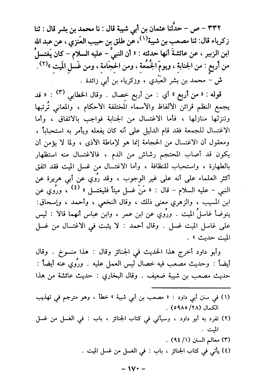 332- ص- حدثنا عثمان بن أبي شيبة قال: نا محمد بن بشر قال: ثنا