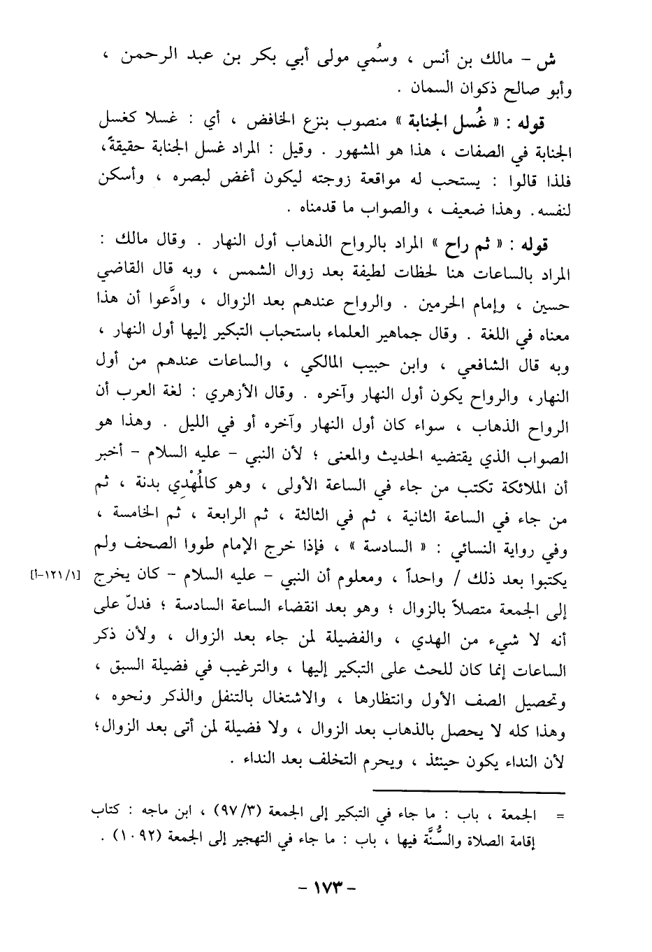 الجمعة، باب: ما جاء في التبكير إلى الجمعة (3/97) ، ابن ماجه: كتاب