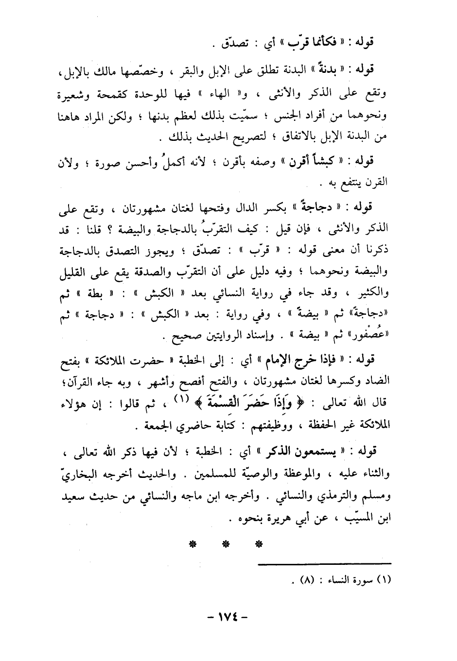والكثير، وقد جاء في رواية النسائي بعد " الكبش ": " بطة " ثم