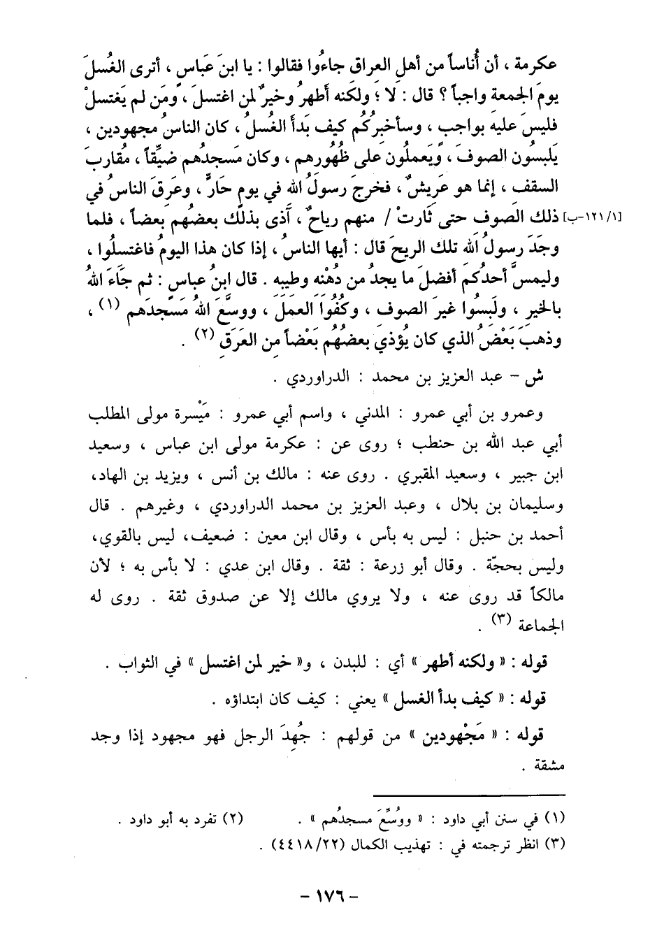 فليسَ عليهَ بواجب، وسأخبرُكُم كيف بَدا الغُسلُ، كان الناسُ مجهودين،