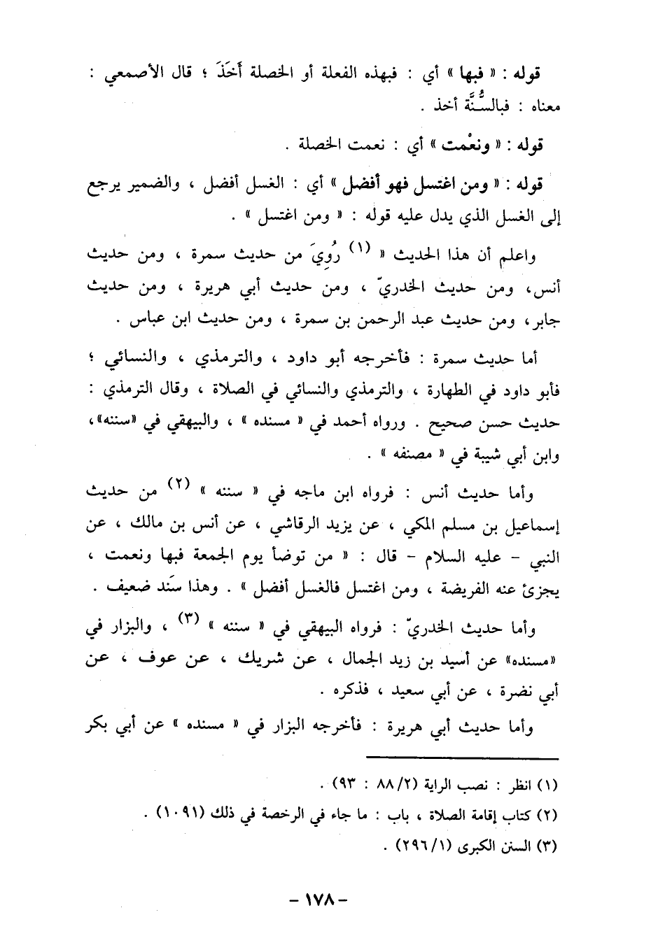 النبي- عليه السلام- قال: " من توضأ يوم الجمعة فبها ونعمت،